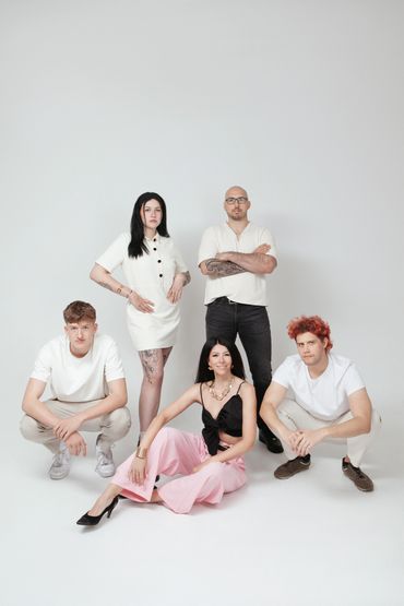 Das sind wir Clemens, Samuel, Mark, Dominik, Wolfgang, Julia und Madeleine und ja, Lupa ist auch dabei.